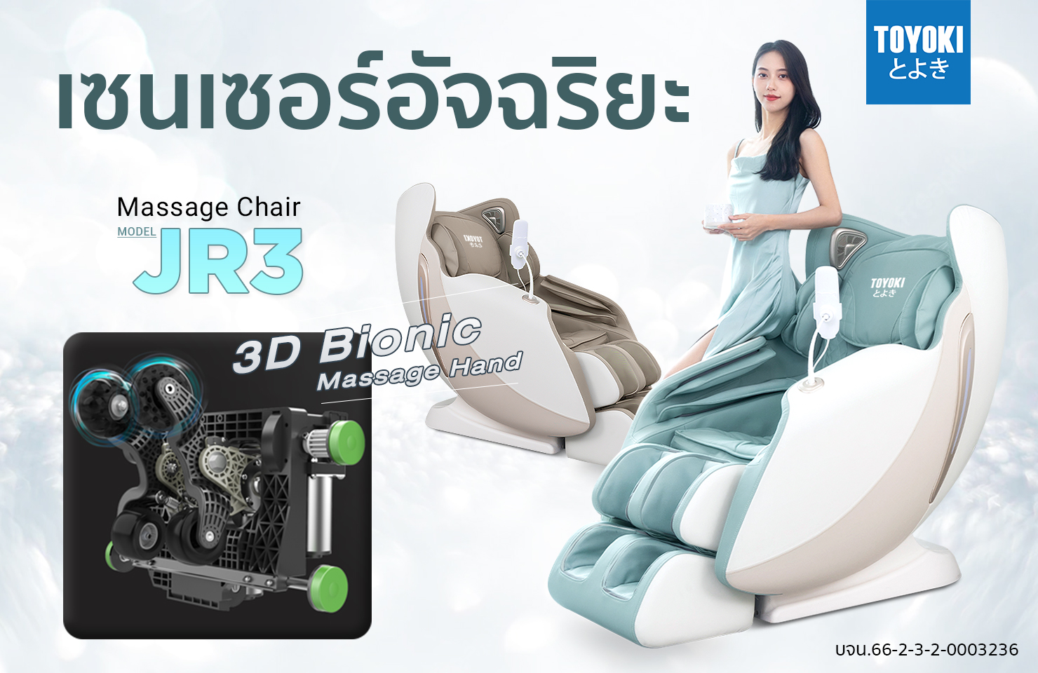 ระบบนวดแบบ 3 มิติ นวดลึกถึงจุดปวดเมื่อย เทคโนโลยีสุดล้ำ เพิ่มฟังก์ชันนวดเข่า และระบบนวดกดจุดเหอกู่ (สิทธิบัตรพิเศษเฉพาะแบรนด์ TOKUYO)