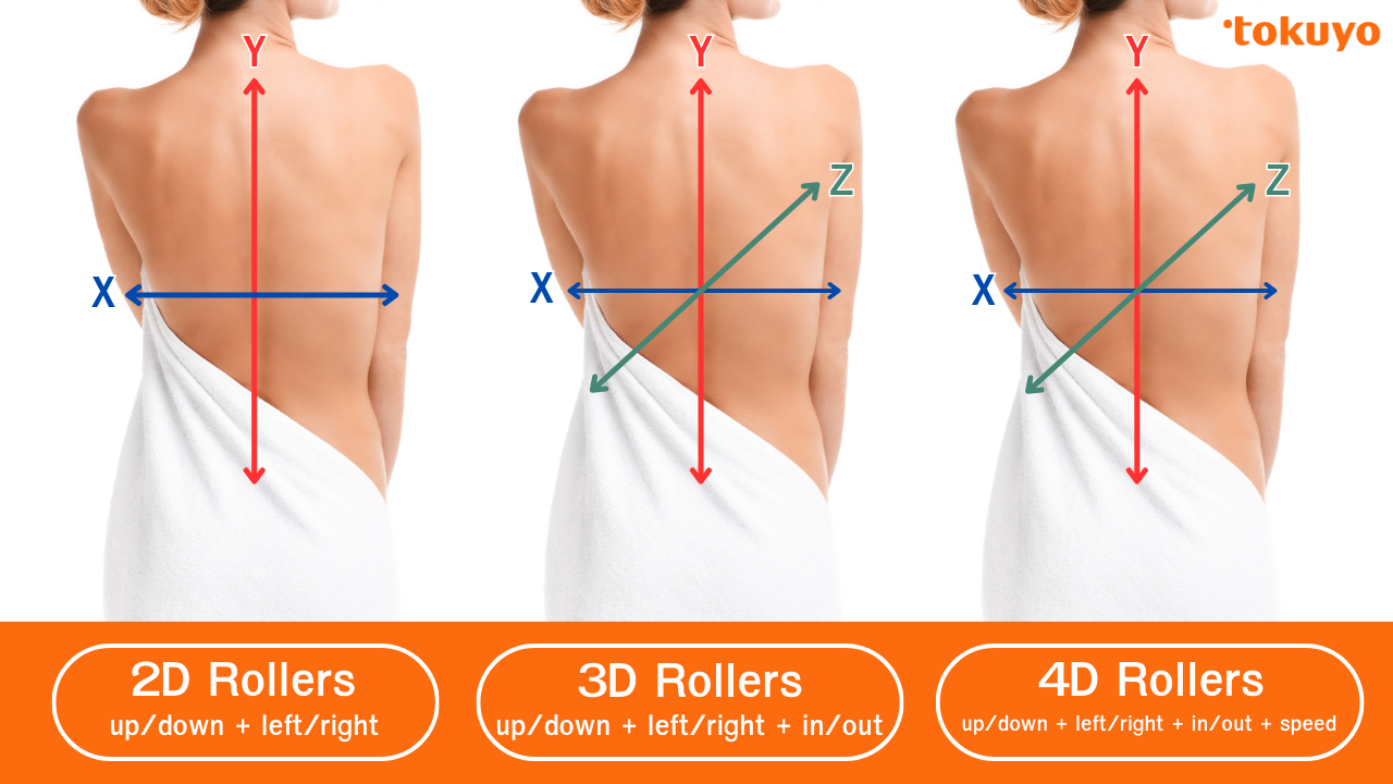 เก้าอี้นวด 2D เป็นเก้าอี้นวดรูปแบบที่เก่าแก่ที่สุด ลูกกลิ้งนวดจะเคลื่อนที่ในรูปแบบ 2 มิติ นั่นคือลูกกลิ้งจะยึดติดกับระนาบ X และ Y โดยจะเลื่อนขึ้น-ลงจากคอไปจนถึงหลังส่วนล่าง ถือเป็นเก้าอี้นวดที่ได้รับความนิยมมากในช่วงนั้นเลยค่ะ เพราะเป็นเก้าอี้นวดที่ใช้งานง่ายและธรรมดาที่สุดในตลาด ที่สำคัญราคาไม่สูงมากอีกด้วย!