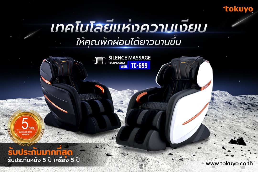TOKUYO ได้มองเห็นความสำคัญในข้อนี้ จึงได้ปรับปรุงและพัฒนากลไกพิเศษจนเป็นเก้าอี้นวดไฟฟ้า รุ่น TC-699 ที่มาพร้อมกับเทคโนโลยีสุดล้ำ ที่ให้ความเงียบ ลดทอนเสียงรบกวน พักผ่อนได้ยาวนานขึ้น