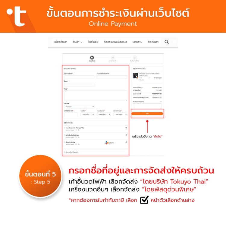 กรอกข้อมูลส่วนตัวและสถานที่จัดส่ง
