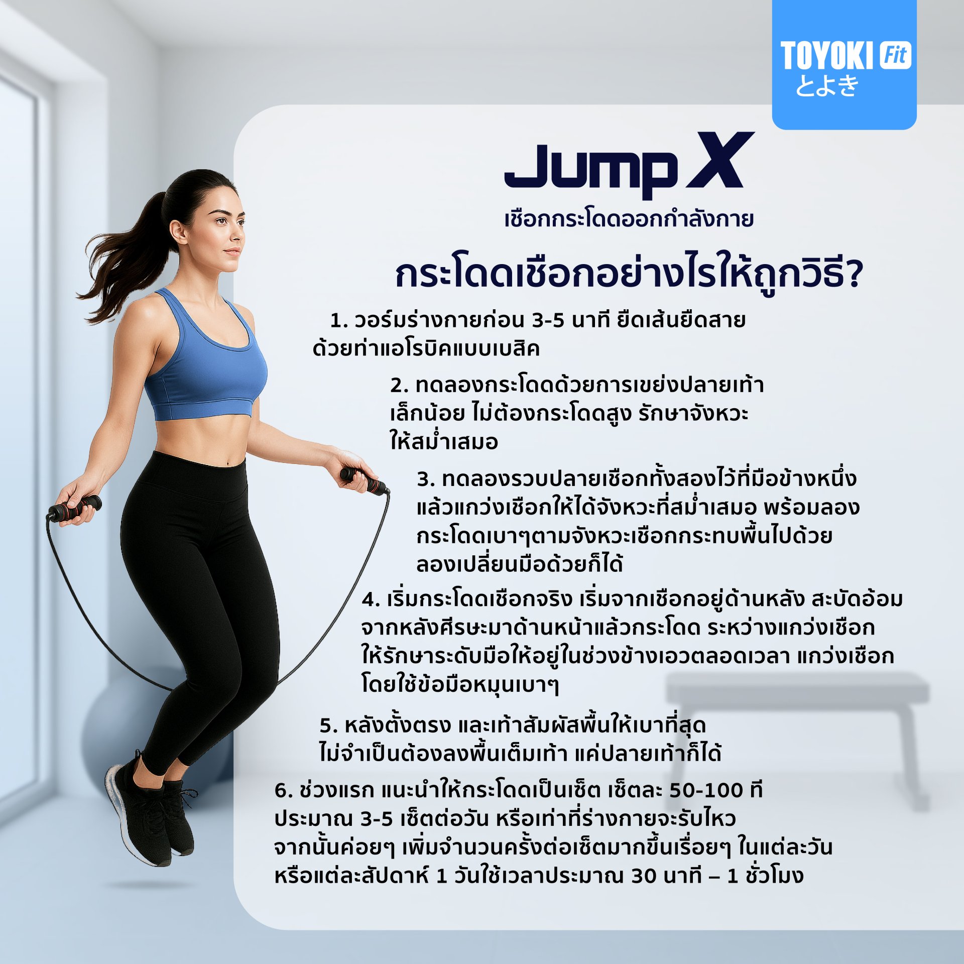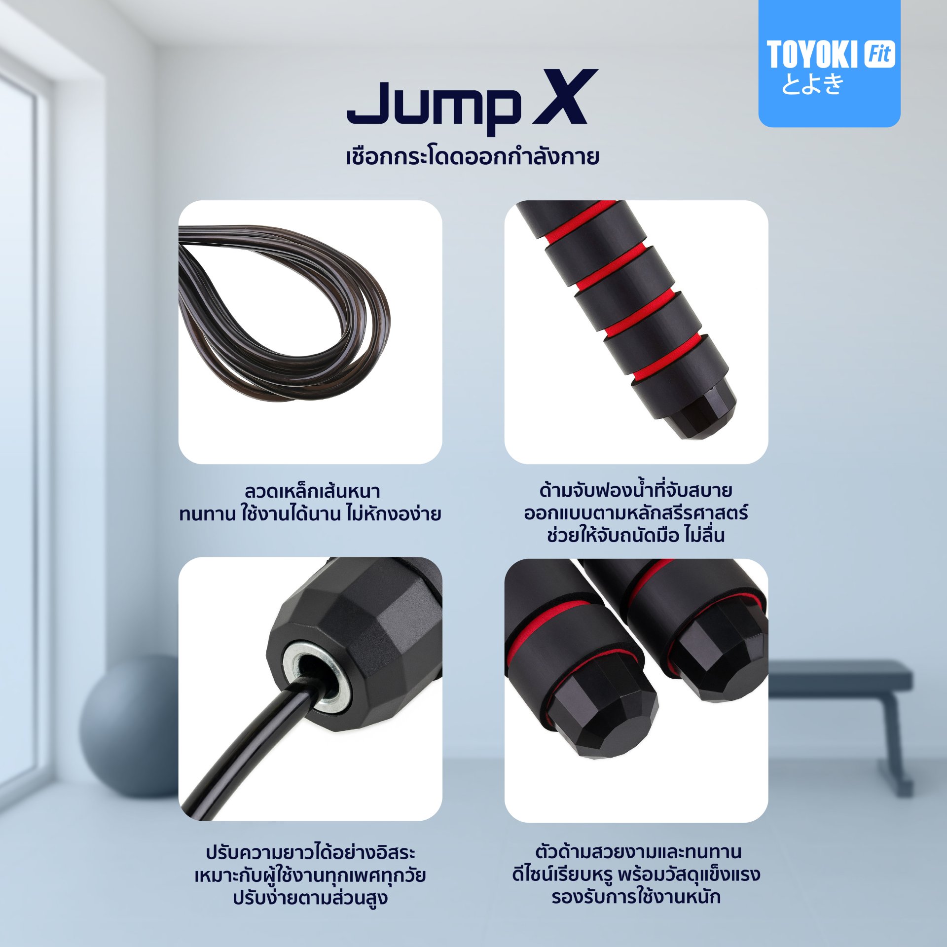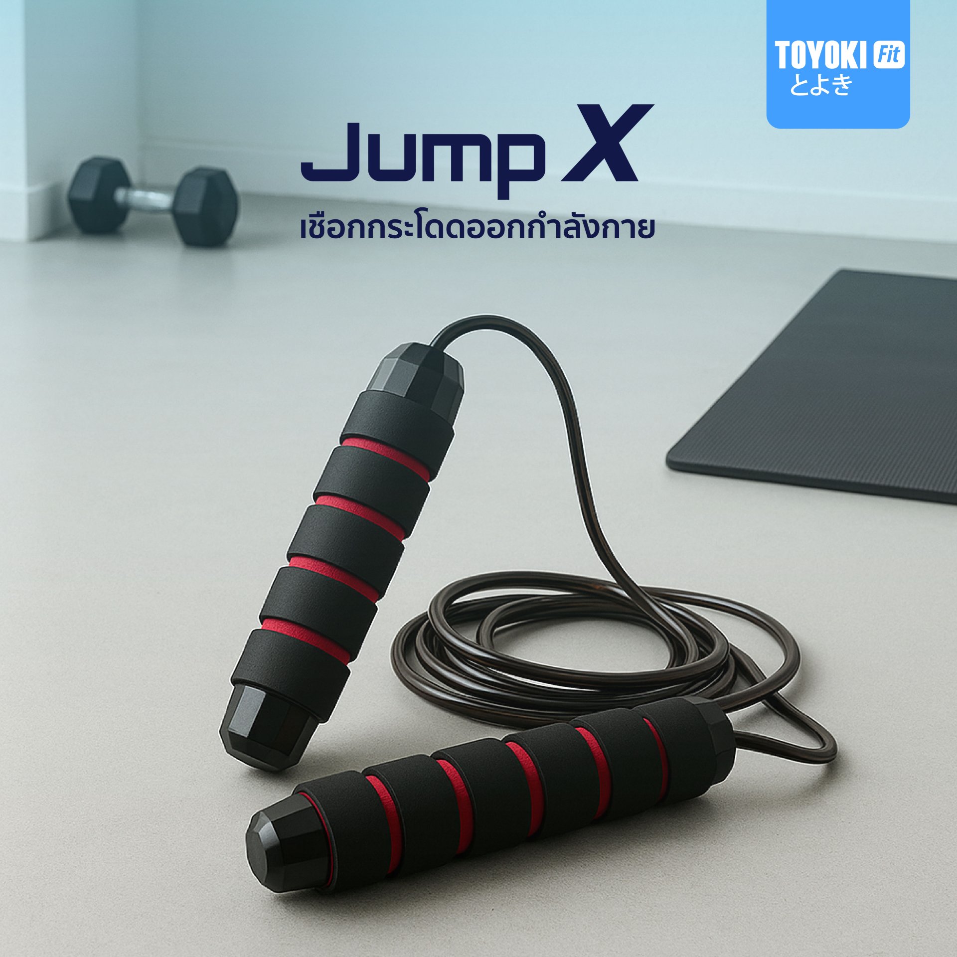TOYOKI Jump X เชือกกระโดดออกกำลังกาย ด้ามจับนุ่ม หมุนลื่น ไม่พันกัน กระชับหุ่น เบิร์นไขมันง่ายๆ ได้ทุกวัน!